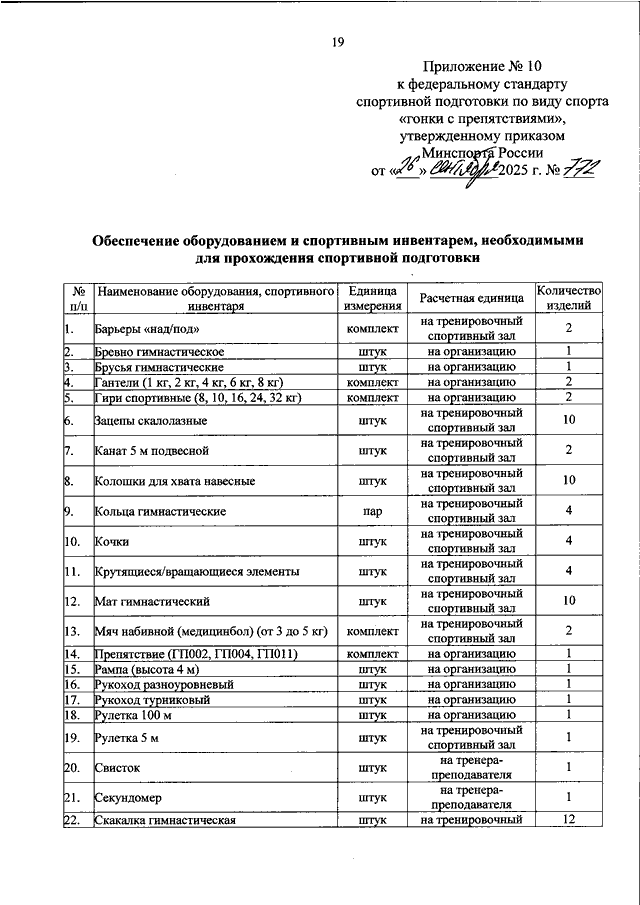 ПРИКАЗ Минспорта РФ от 26.09.2025 N 772
