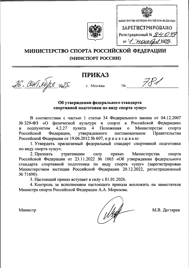 ПРИКАЗ Минспорта РФ от 26.09.2025 N 781