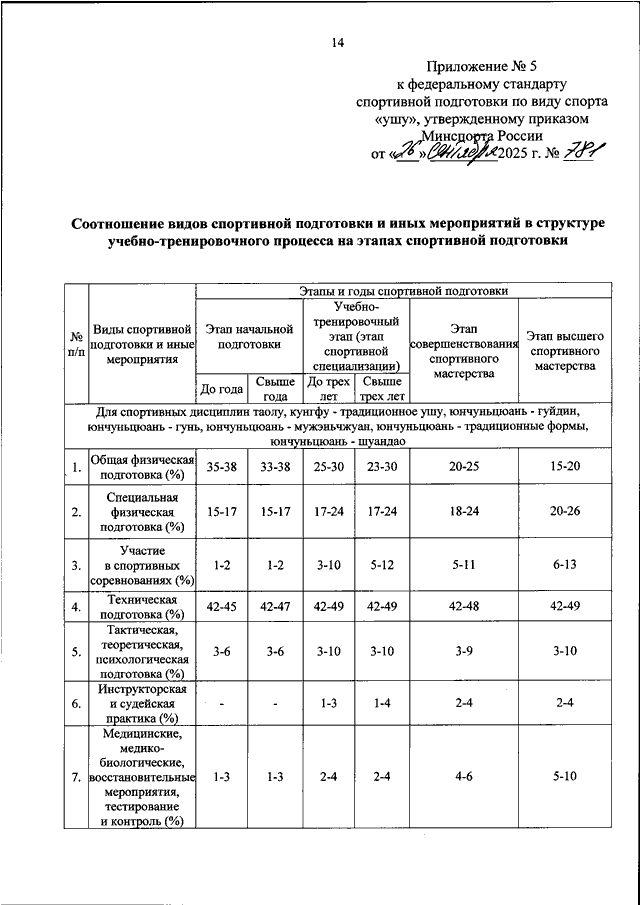 ПРИКАЗ Минспорта РФ от 26.09.2025 N 781