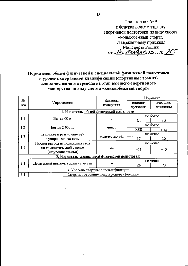 ПРИКАЗ Минспорта РФ от 26.09.2025 N 765