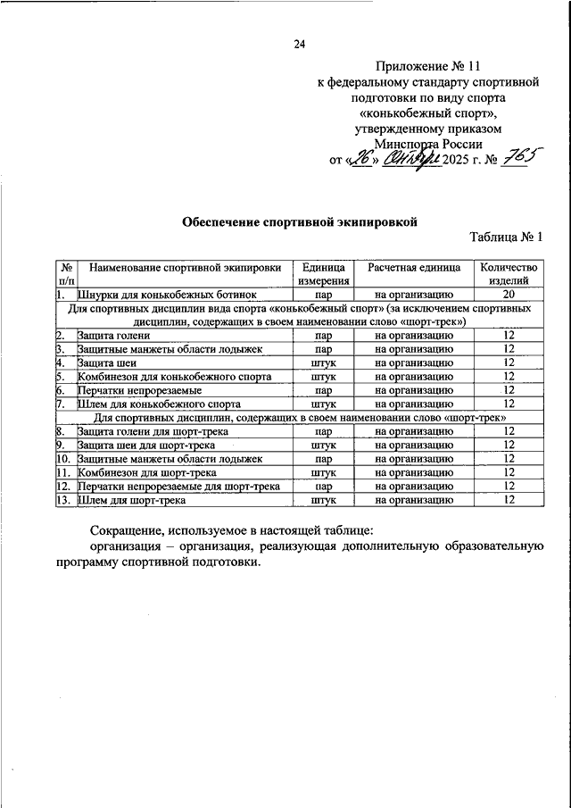ПРИКАЗ Минспорта РФ от 26.09.2025 N 765