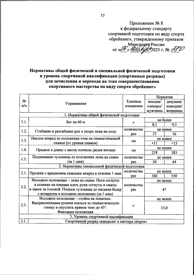 ПРИКАЗ Минспорта РФ от 26.09.2025 N 780