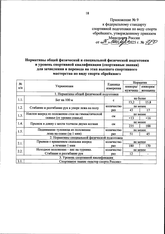 ПРИКАЗ Минспорта РФ от 26.09.2025 N 780