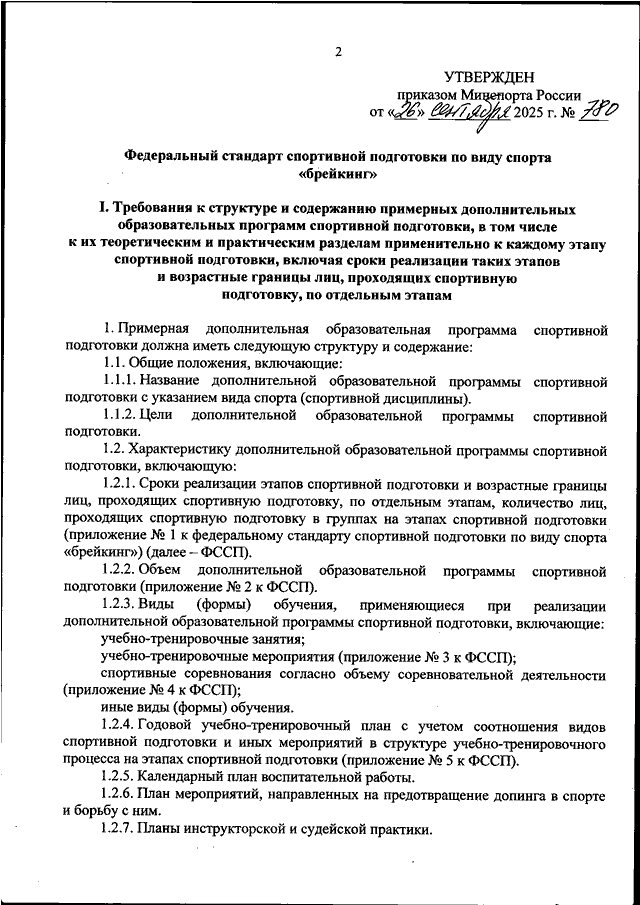 ПРИКАЗ Минспорта РФ от 26.09.2025 N 780