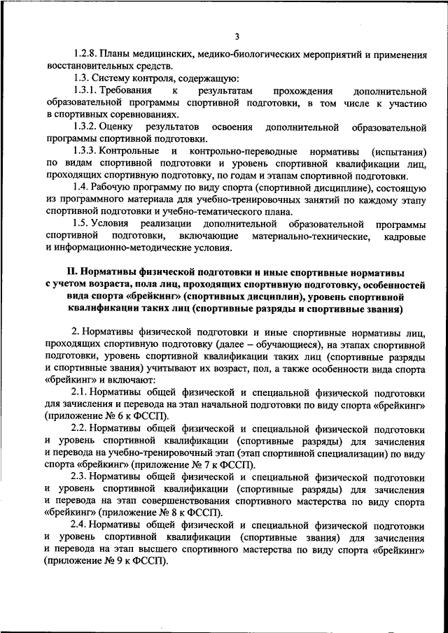 "ОБ УТВЕРЖДЕНИИ ФЕДЕРАЛЬНОГО СТАНДАРТА СПОРТИВНОЙ ПОДГОТОВКИ ПО ВИДУ СПОРТА "БРЕЙКИНГ"