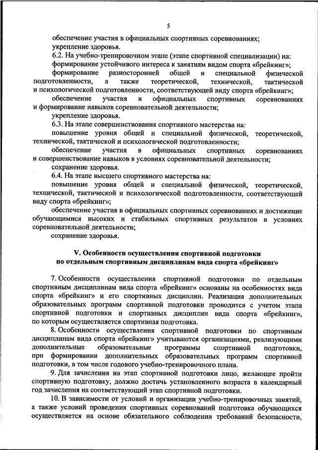 "ОБ УТВЕРЖДЕНИИ ФЕДЕРАЛЬНОГО СТАНДАРТА СПОРТИВНОЙ ПОДГОТОВКИ ПО ВИДУ СПОРТА "БРЕЙКИНГ"