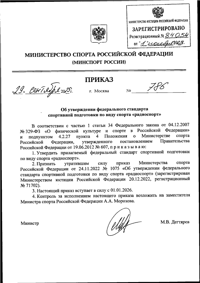 ПРИКАЗ Минспорта РФ от 29.09.2025 N 786