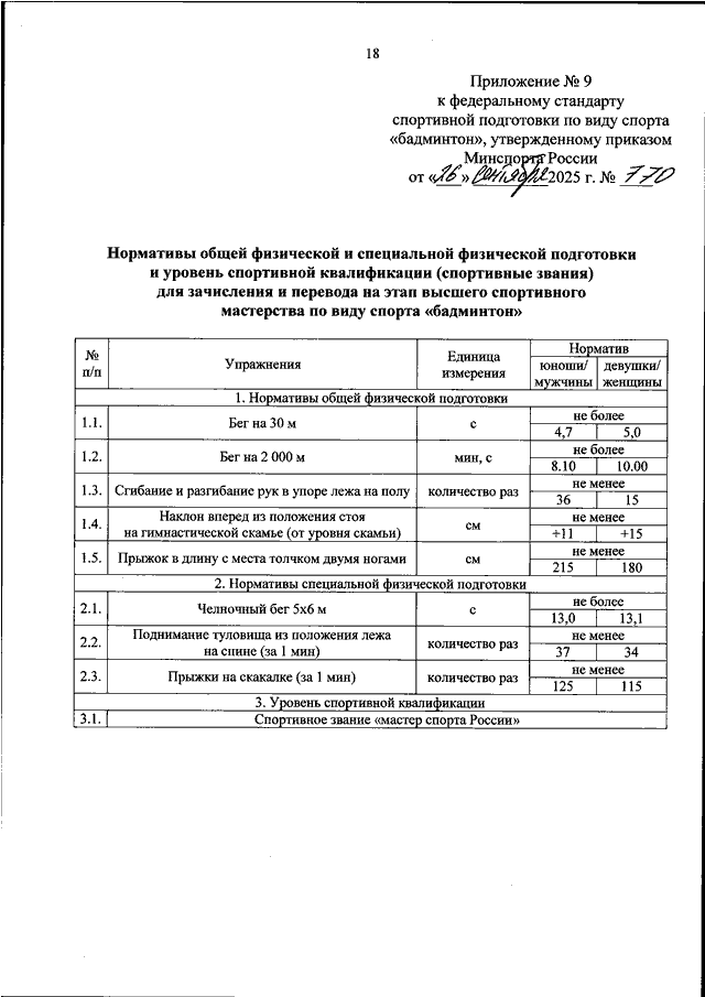 ПРИКАЗ Минспорта РФ от 26.09.2025 N 770