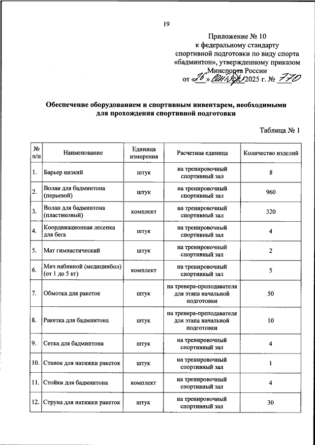 ПРИКАЗ Минспорта РФ от 26.09.2025 N 770