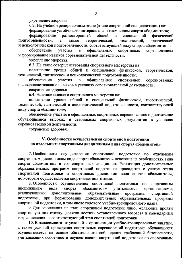 "ОБ УТВЕРЖДЕНИИ ФЕДЕРАЛЬНОГО СТАНДАРТА СПОРТИВНОЙ ПОДГОТОВКИ ПО ВИДУ СПОРТА "БАДМИНТОН"