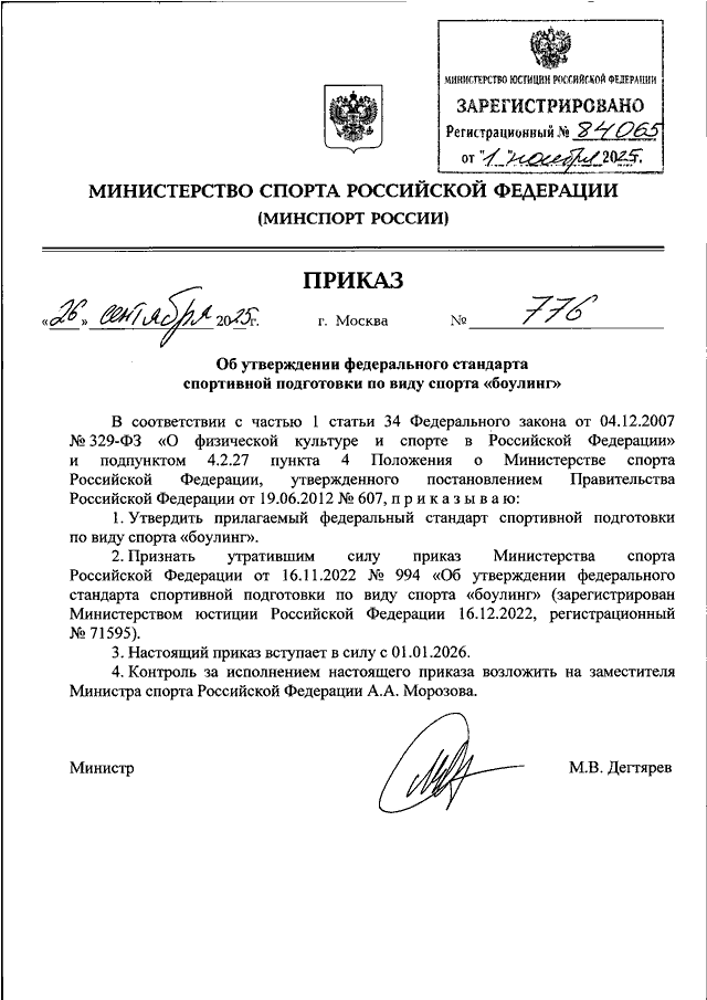 ПРИКАЗ Минспорта РФ от 26.09.2025 N 776