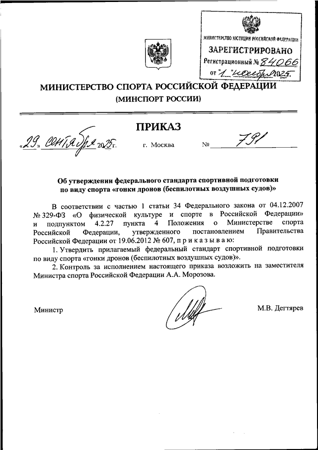 ПРИКАЗ Минспорта РФ от 29.09.2025 N 791