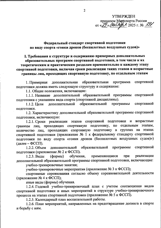 ПРИКАЗ Минспорта РФ от 29.09.2025 N 791