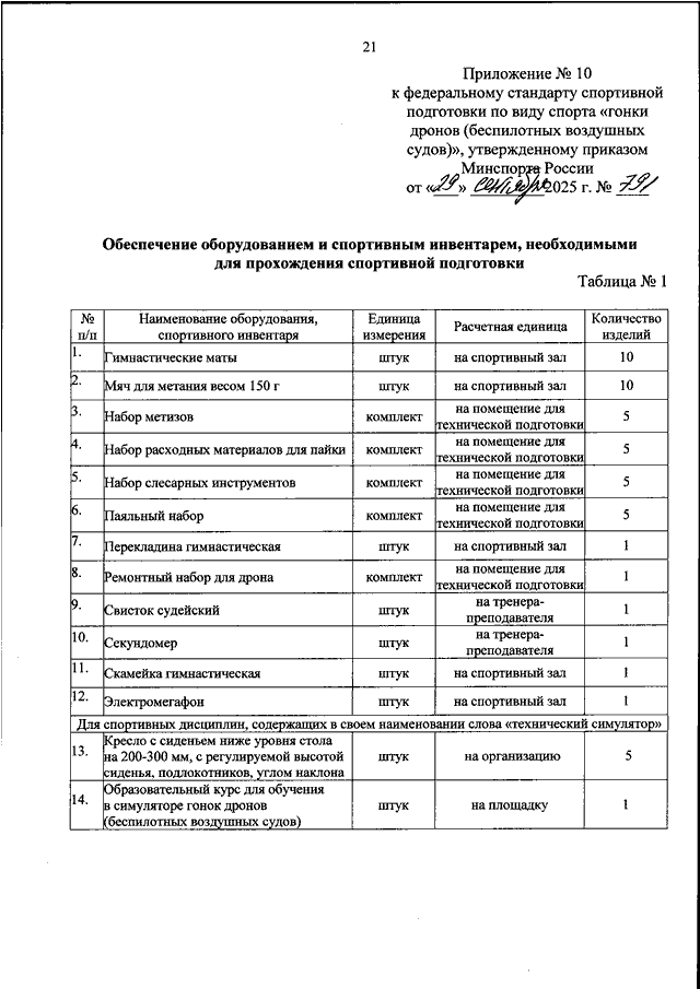 ПРИКАЗ Минспорта РФ от 29.09.2025 N 791