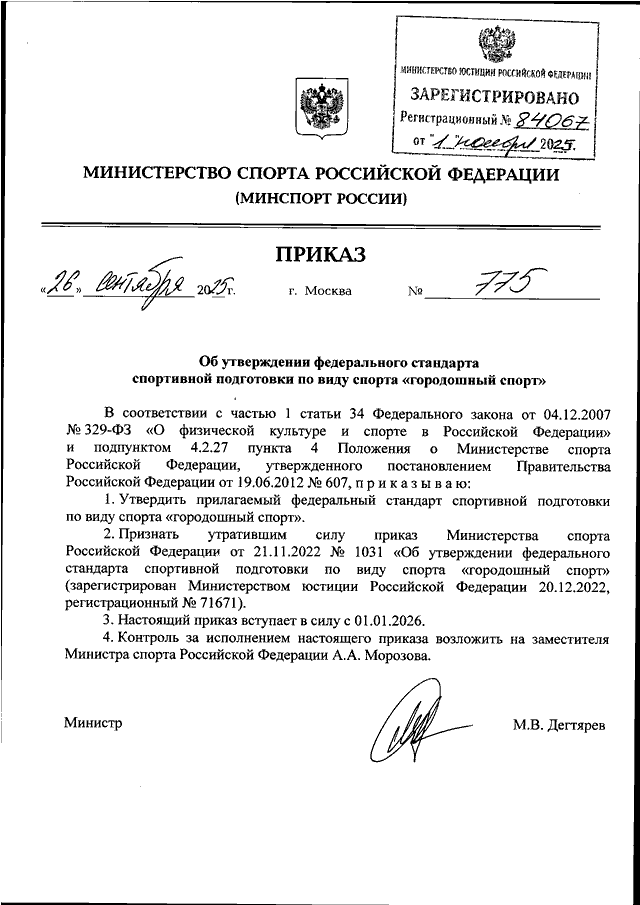 ПРИКАЗ Минспорта РФ от 26.09.2025 N 775