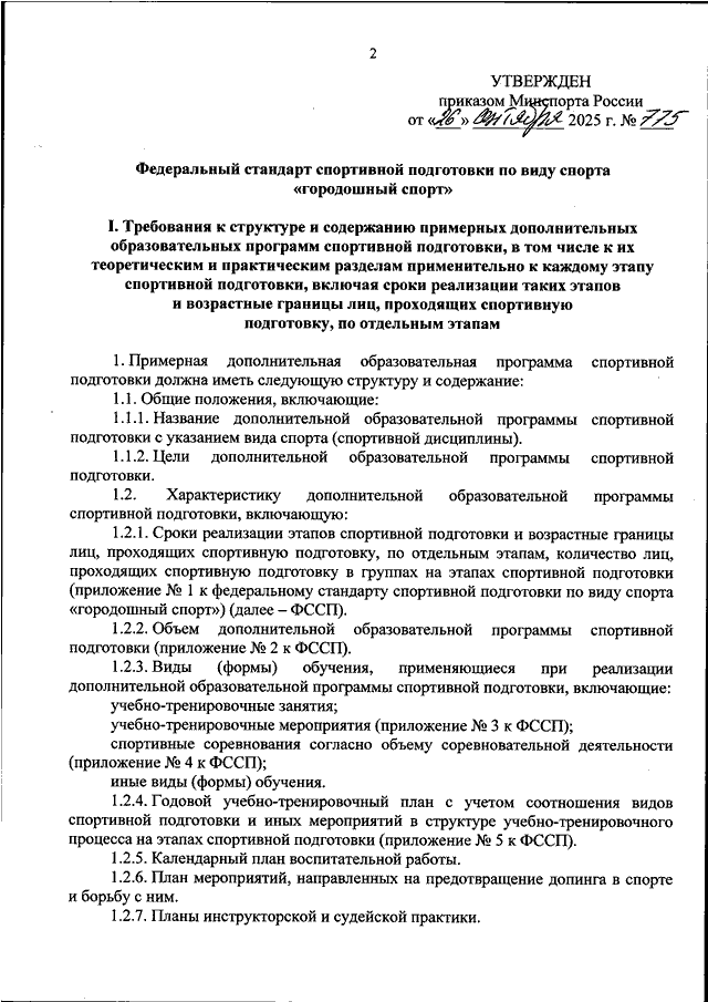 ПРИКАЗ Минспорта РФ от 26.09.2025 N 775