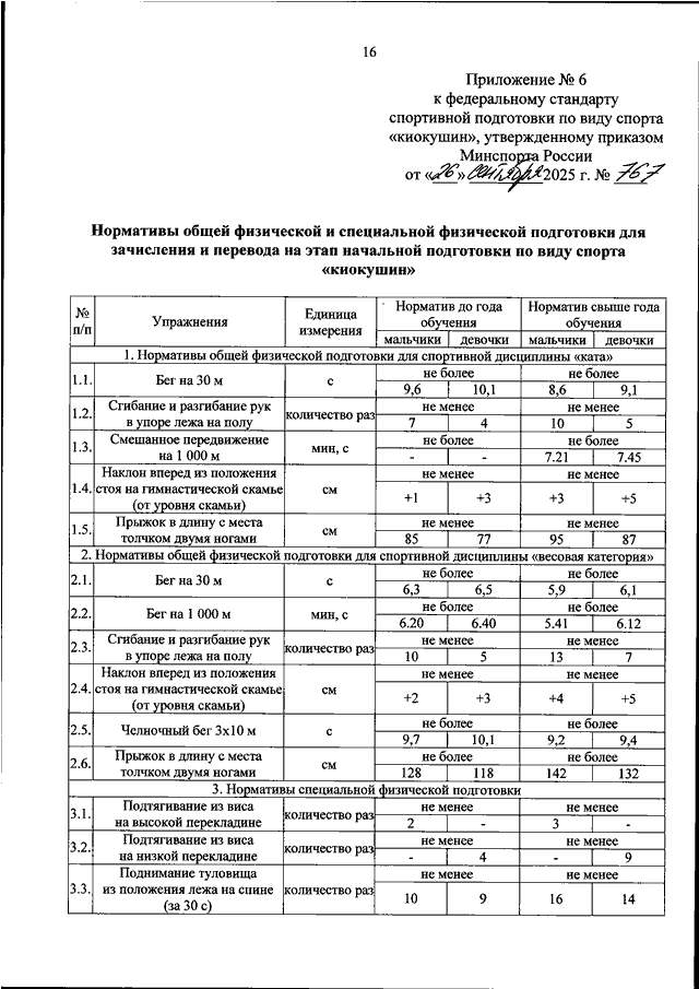 ПРИКАЗ Минспорта РФ от 26.09.2025 N 767