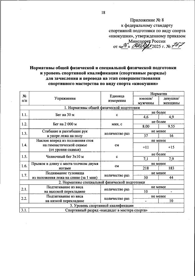 ПРИКАЗ Минспорта РФ от 26.09.2025 N 767