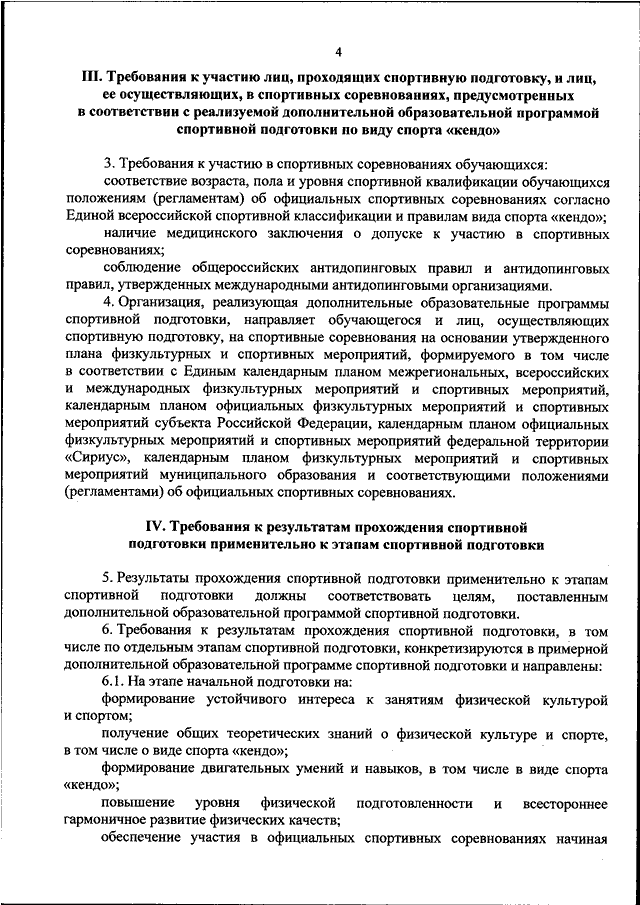 "ОБ УТВЕРЖДЕНИИ ФЕДЕРАЛЬНОГО СТАНДАРТА СПОРТИВНОЙ ПОДГОТОВКИ ПО ВИДУ СПОРТА "КЕНДО"