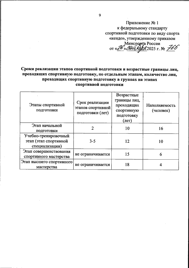 ПРИКАЗ Минспорта РФ от 26.09.2025 N 766