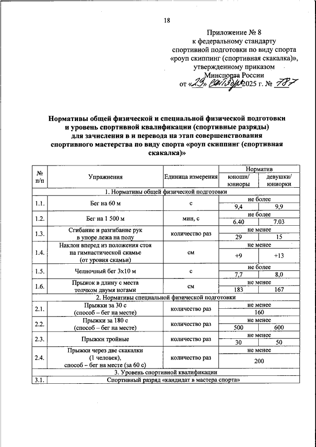 ПРИКАЗ Минспорта РФ от 29.09.2025 N 787