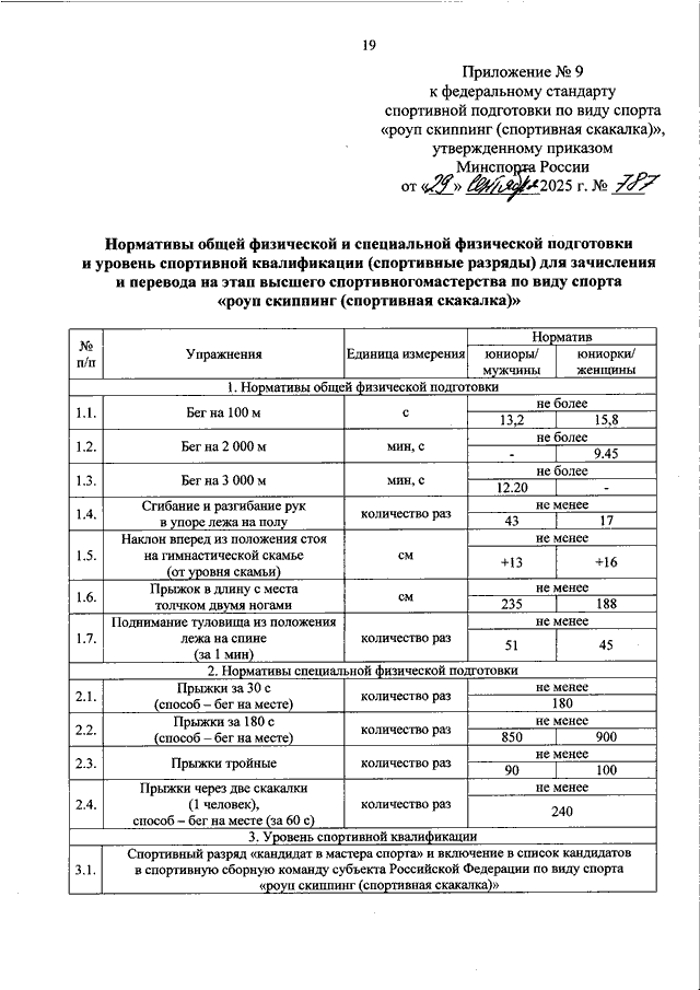 ПРИКАЗ Минспорта РФ от 29.09.2025 N 787