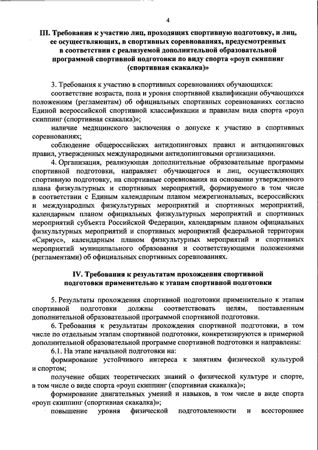 "ОБ УТВЕРЖДЕНИИ ФЕДЕРАЛЬНОГО СТАНДАРТА СПОРТИВНОЙ ПОДГОТОВКИ ПО ВИДУ СПОРТА "РОУП СКИППИНГ (СПОРТИВНАЯ СКАКАЛКА)"