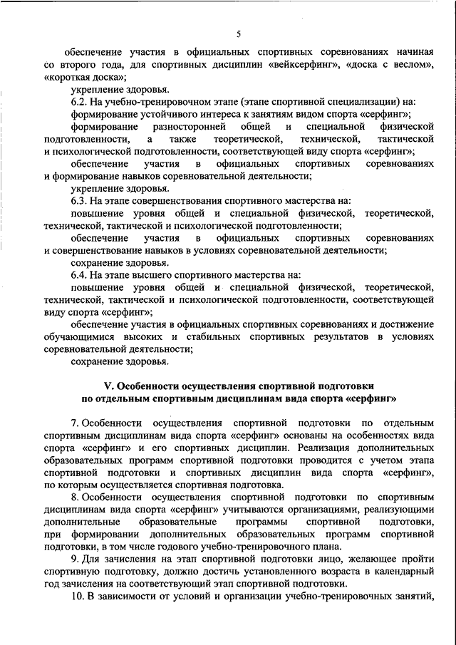 "ОБ УТВЕРЖДЕНИИ ФЕДЕРАЛЬНОГО СТАНДАРТА СПОРТИВНОЙ ПОДГОТОВКИ ПО ВИДУ СПОРТА "СЕРФИНГ"