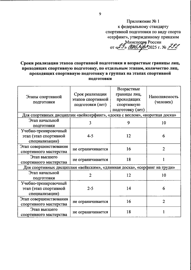 ПРИКАЗ Минспорта РФ от 29.09.2025 N 792