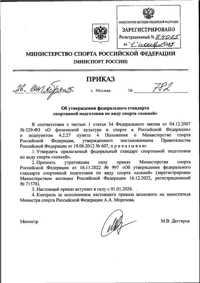 ПРИКАЗ Минспорта РФ от 26.09.2025 N 782