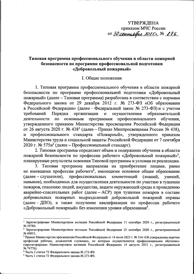 ПРИКАЗ МЧС РФ от 30.09.2025 N 876