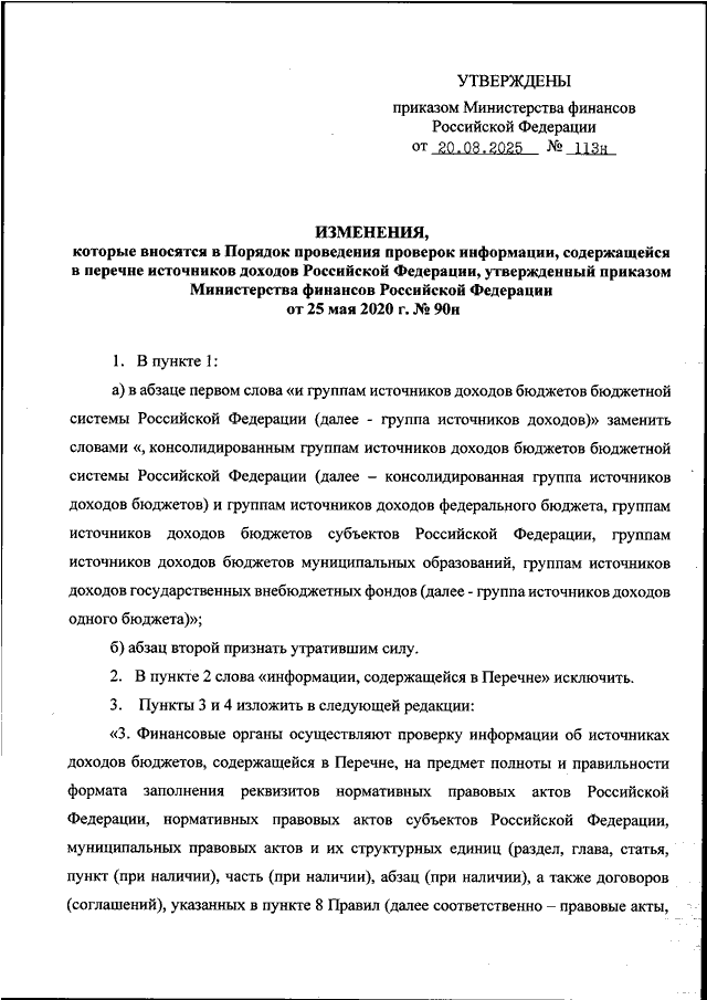 ПРИКАЗ Минфина РФ от 20.08.2025 N 113н