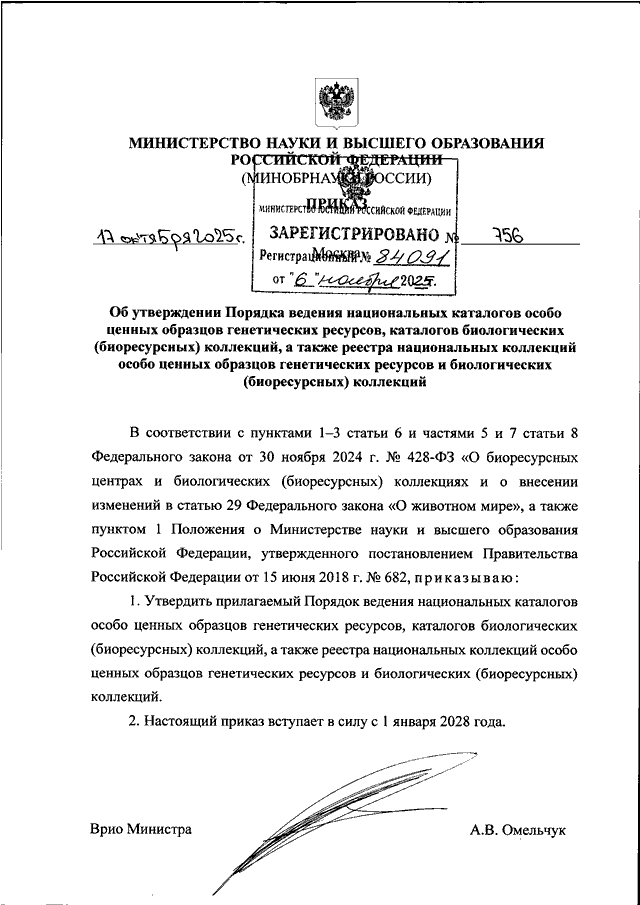 ПРИКАЗ Минобрнауки РФ от 17.10.2025 N 756