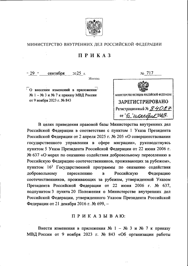 ПРИКАЗ МВД РФ от 29.09.2025 N 717