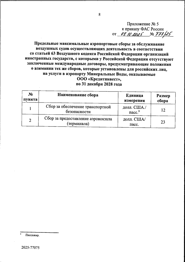 "ОБ УТВЕРЖДЕНИИ ПРЕДЕЛЬНЫХ МАКСИМАЛЬНЫХ АЭРОПОРТОВЫХ СБОРОВ И ТАРИФОВ ЗА ОБСЛУЖИВАНИЕ ВОЗДУШНЫХ СУДОВ ЮРИДИЧЕСКИХ ЛИЦ, ИНДИВИДУАЛЬНЫХ ПРЕДПРИНИМАТЕЛЕЙ И ФИЗИЧЕСКИХ ЛИЦ, ОСУЩЕСТВЛЯЮЩИХ КОММЕРЧЕСКИЕ ВОЗДУШНЫЕ ПЕРЕВОЗКИ, АВИАЦИОННЫЕ РАБОТЫ, ПОЛЕТЫ АВИАЦИИ ОБЩЕГО НАЗНАЧЕНИЯ, ОРГАНИЗАЦИЙ ЭКСПЕРИМЕНТАЛЬНОЙ И ГОСУДАРСТВЕННОЙ АВИАЦИИ, ОСУЩЕСТВЛЯЮЩИХ ДЕЯТЕЛЬНОСТЬ В СООТВЕТСТВИИ СО СТАТЬЕЙ 63 ВОЗДУШНОГО КОДЕКСА РОССИЙСКОЙ ФЕДЕРАЦИИ ОРГАНИЗАЦИЙ ИНОСТРАННЫХ ГОСУДАРСТВ, С КОТОРЫМИ РОССИЙСКОЙ ФЕДЕРАЦИЕЙ ЗАКЛЮЧЕНЫ МЕЖДУНАРОДНЫЕ ДОГОВОРЫ, ПРЕДУСМАТРИВАЮЩИЕ ПОЛОЖЕНИЯ О ВЗИМАНИИ ТЕХ ЖЕ СБОРОВ И ТАРИФОВ, КОТОРЫЕ УСТАНОВЛЕНЫ ДЛЯ РОССИЙСКИХ ЛИЦ, И ПРЕДЕЛЬНЫХ МАКСИМАЛЬНЫХ АЭРОПОРТОВЫХ СБОРОВ ЗА ОБСЛУЖИВАНИЕ ВОЗДУШНЫХ СУДОВ ОСУЩЕСТВЛЯЮЩИХ ДЕЯТЕЛЬНОСТЬ В СООТВЕТСТВИИ СО СТАТЬЕЙ 63 ВОЗДУШНОГО КОДЕКСА РОССИЙСКОЙ ФЕДЕРАЦИИ ОРГАНИЗАЦИЙ ИНОСТРАННЫХ ГОСУДАРСТВ, С КОТОРЫМИ У РОССИЙСКОЙ ФЕДЕРАЦИИ ОТСУТСТВУЮТ ЗАКЛЮЧЕННЫЕ МЕЖДУНАРОДНЫЕ ДОГОВОРЫ, ПРЕДУСМАТРИВАЮЩИЕ ПОЛОЖЕНИЯ О ВЗИМАНИИ ТЕХ ЖЕ СБОРОВ, КОТОРЫЕ УСТАНОВЛЕНЫ ДЛЯ РОССИЙСКИХ ЛИЦ, НА УСЛУГИ В АЭРОПОРТУ МИНЕРАЛЬНЫЕ ВОДЫ, ОКАЗЫВАЕМЫЕ ООО "КРЕДИТИНВЕСТ", НА ДОЛГОСРОЧНЫЙ ПЕРИОД"