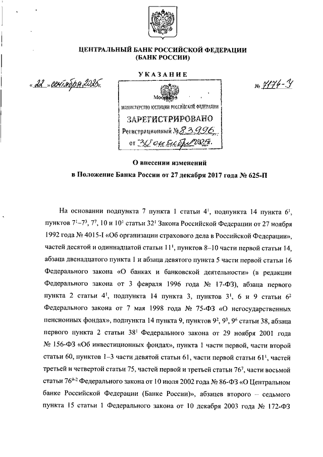 УКАЗАНИЕ ЦБ РФ от 22.09.2025 N 7174-У