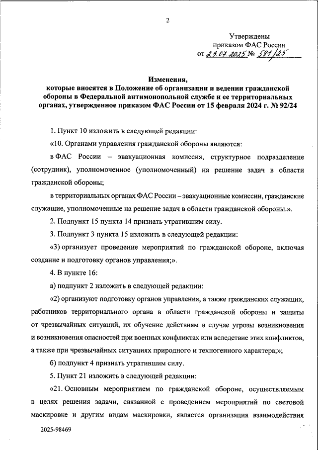 "О ВНЕСЕНИИ ИЗМЕНЕНИЙ В ПОЛОЖЕНИЕ ОБ ОРГАНИЗАЦИИ И ВЕДЕНИИ ГРАЖДАНСКОЙ ОБОРОНЫ В ФЕДЕРАЛЬНОЙ АНТИМОНОПОЛЬНОЙ СЛУЖБЕ И ЕЕ ТЕРРИТОРИАЛЬНЫХ ОРГАНАХ, УТВЕРЖДЕННОЕ ПРИКАЗОМ ФАС РОССИИ ОТ 15 ФЕВРАЛЯ 2024 Г. N 92/24"