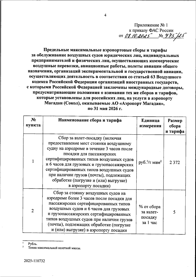 "ОБ УТВЕРЖДЕНИИ ПРЕДЕЛЬНЫХ МАКСИМАЛЬНЫХ АЭРОПОРТОВЫХ СБОРОВ И ТАРИФОВ ЗА ОБСЛУЖИВАНИЕ ВОЗДУШНЫХ СУДОВ ЮРИДИЧЕСКИХ ЛИЦ, ИНДИВИДУАЛЬНЫХ ПРЕДПРИНИМАТЕЛЕЙ И ФИЗИЧЕСКИХ ЛИЦ, ОСУЩЕСТВЛЯЮЩИХ КОММЕРЧЕСКИЕ ВОЗДУШНЫЕ ПЕРЕВОЗКИ, АВИАЦИОННЫЕ РАБОТЫ, ПОЛЕТЫ АВИАЦИИ ОБЩЕГО НАЗНАЧЕНИЯ, ОРГАНИЗАЦИЙ ЭКСПЕРИМЕНТАЛЬНОЙ И ГОСУДАРСТВЕННОЙ АВИАЦИИ, ОСУЩЕСТВЛЯЮЩИХ ДЕЯТЕЛЬНОСТЬ В СООТВЕТСТВИИ СО СТАТЬЕЙ 63 ВОЗДУШНОГО КОДЕКСА РОССИЙСКОЙ ФЕДЕРАЦИИ ОРГАНИЗАЦИЙ ИНОСТРАННЫХ ГОСУДАРСТВ, С КОТОРЫМИ РОССИЙСКОЙ ФЕДЕРАЦИЕЙ ЗАКЛЮЧЕНЫ МЕЖДУНАРОДНЫЕ ДОГОВОРЫ, ПРЕДУСМАТРИВАЮЩИЕ ПОЛОЖЕНИЯ О ВЗИМАНИИ ТЕХ ЖЕ СБОРОВ И ТАРИФОВ, КОТОРЫЕ УСТАНОВЛЕНЫ ДЛЯ РОССИЙСКИХ ЛИЦ, И ПРЕДЕЛЬНЫХ МАКСИМАЛЬНЫХ АЭРОПОРТОВЫХ СБОРОВ ЗА ОБСЛУЖИВАНИЕ ВОЗДУШНЫХ СУДОВ ОСУЩЕСТВЛЯЮЩИХ ДЕЯТЕЛЬНОСТЬ В СООТВЕТСТВИИ СО СТАТЬЕЙ 63 ВОЗДУШНОГО КОДЕКСА РОССИЙСКОЙ ФЕДЕРАЦИИ ОРГАНИЗАЦИЙ ИНОСТРАННЫХ ГОСУДАРСТВ, С КОТОРЫМИ У РОССИЙСКОЙ ФЕДЕРАЦИИ ОТСУТСТВУЮТ ЗАКЛЮЧЕННЫЕ МЕЖДУНАРОДНЫЕ ДОГОВОРЫ, ПРЕДУСМАТРИВАЮЩИЕ ПОЛОЖЕНИЯ О ВЗИМАНИИ ТЕХ ЖЕ СБОРОВ, КОТОРЫЕ УСТАНОВЛЕНЫ ДЛЯ РОССИЙСКИХ ЛИЦ, НА УСЛУГИ В АЭРОПОРТУ МАГАДАН (СОКОЛ), ОКАЗЫВАЕМЫЕ АО "АЭРОПОРТ МАГАДАН", НА ДОЛГОСРОЧНЫЙ ПЕРИОД"
