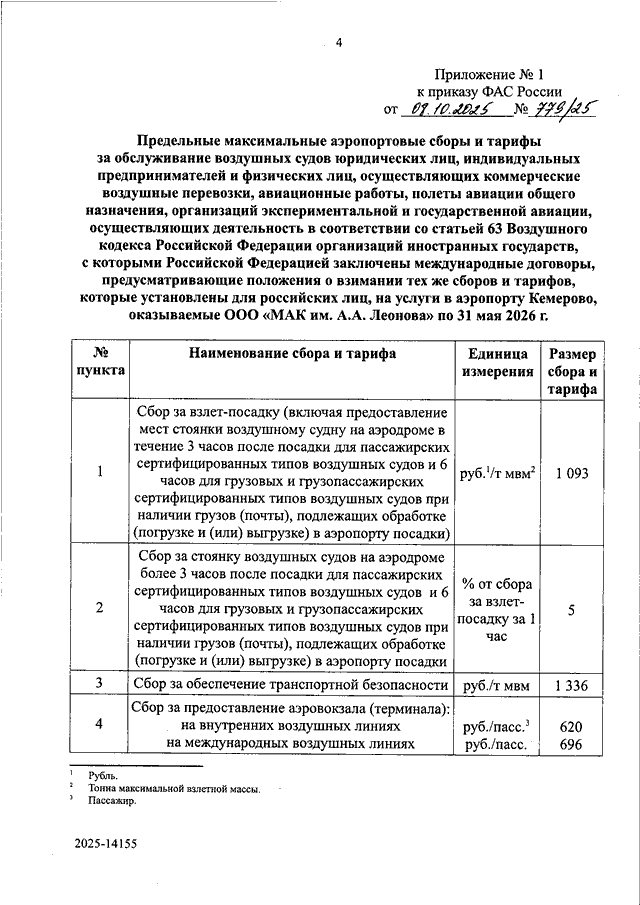 УСТАНОВЛЕНЫ ДЛЯ РОССИЙСКИХ ЛИЦ, НА УСЛУГИ В АЭРОПОРТУ КЕМЕРОВО,