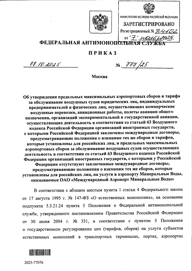 ПРИКАЗ Федеральной антимонопольной службы от 08.10.2025 N 777/25