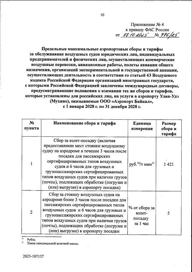 "ОБ УТВЕРЖДЕНИИ ПРЕДЕЛЬНЫХ МАКСИМАЛЬНЫХ АЭРОПОРТОВЫХ СБОРОВ И ТАРИФОВ ЗА ОБСЛУЖИВАНИЕ ВОЗДУШНЫХ СУДОВ ЮРИДИЧЕСКИХ ЛИЦ, ИНДИВИДУАЛЬНЫХ ПРЕДПРИНИМАТЕЛЕЙ И ФИЗИЧЕСКИХ ЛИЦ, ОСУЩЕСТВЛЯЮЩИХ КОММЕРЧЕСКИЕ ВОЗДУШНЫЕ ПЕРЕВОЗКИ, АВИАЦИОННЫЕ РАБОТЫ, ПОЛЕТЫ АВИАЦИИ ОБЩЕГО НАЗНАЧЕНИЯ, ОРГАНИЗАЦИЙ ЭКСПЕРИМЕНТАЛЬНОЙ И ГОСУДАРСТВЕННОЙ АВИАЦИИ, ОСУЩЕСТВЛЯЮЩИХ ДЕЯТЕЛЬНОСТЬ В СООТВЕТСТВИИ СО СТАТЬЕЙ 63 ВОЗДУШНОГО КОДЕКСА РОССИЙСКОЙ ФЕДЕРАЦИИ ОРГАНИЗАЦИЙ ИНОСТРАННЫХ ГОСУДАРСТВ, С КОТОРЫМИ РОССИЙСКОЙ ФЕДЕРАЦИЕЙ ЗАКЛЮЧЕНЫ МЕЖДУНАРОДНЫЕ ДОГОВОРЫ, ПРЕДУСМАТРИВАЮЩИЕ ПОЛОЖЕНИЯ О ВЗИМАНИИ ТЕХ ЖЕ СБОРОВ И ТАРИФОВ, КОТОРЫЕ УСТАНОВЛЕНЫ ДЛЯ РОССИЙСКИХ ЛИЦ, И ПРЕДЕЛЬНЫХ МАКСИМАЛЬНЫХ АЭРОПОРТОВЫХ СБОРОВ ЗА ОБСЛУЖИВАНИЕ ВОЗДУШНЫХ СУДОВ ОСУЩЕСТВЛЯЮЩИХ ДЕЯТЕЛЬНОСТЬ В СООТВЕТСТВИИ СО СТАТЬЕЙ 63 ВОЗДУШНОГО КОДЕКСА РОССИЙСКОЙ ФЕДЕРАЦИИ ОРГАНИЗАЦИЙ ИНОСТРАННЫХ ГОСУДАРСТВ, С КОТОРЫМИ У РОССИЙСКОЙ ФЕДЕРАЦИИ ОТСУТСТВУЮТ ЗАКЛЮЧЕННЫЕ МЕЖДУНАРОДНЫЕ ДОГОВОРЫ, ПРЕДУСМАТРИВАЮЩИЕ ПОЛОЖЕНИЯ О ВЗИМАНИИ ТЕХ ЖЕ СБОРОВ, КОТОРЫЕ УСТАНОВЛЕНЫ ДЛЯ РОССИЙСКИХ ЛИЦ, НА УСЛУГИ В АЭРОПОРТУ УЛАН-УДЭ (МУХИНО), ОКАЗЫВАЕМЫЕ, ООО "АЭРОПОРТ БАЙКАЛ", НА ДОЛГОСРОЧНЫЙ ПЕРИОД"