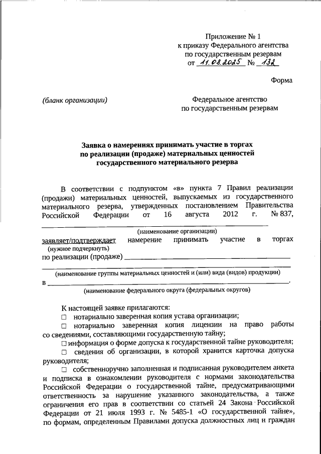 ПРИКАЗ Росрезерва от 11.08.2025 N 132