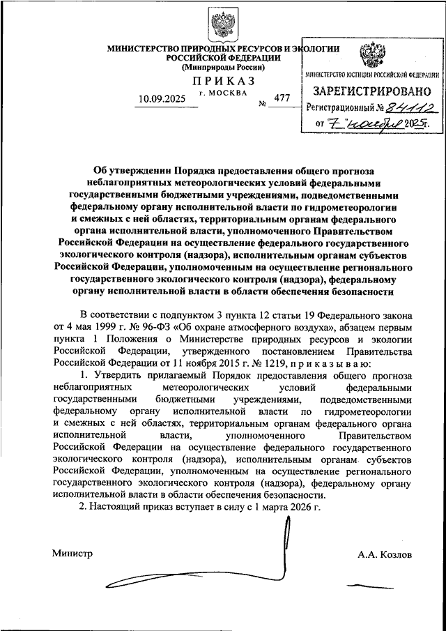 ПРИКАЗ Минприроды РФ от 10.09.2025 N 477