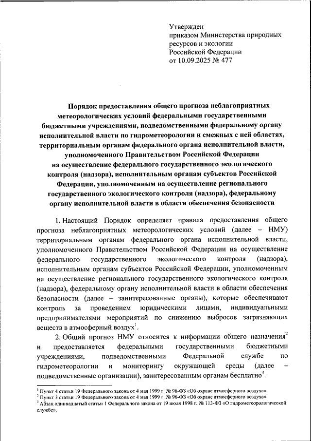 ПРИКАЗ Минприроды РФ от 10.09.2025 N 477