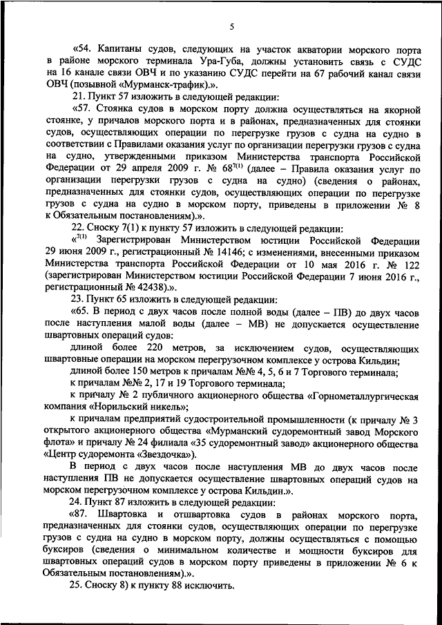 "О ВНЕСЕНИИ ИЗМЕНЕНИЙ В ОБЯЗАТЕЛЬНЫЕ ПОСТАНОВЛЕНИЯ В МОРСКОМ ПОРТУ МУРМАНСК, УТВЕРЖДЕННЫЕ ПРИКАЗОМ МИНИСТЕРСТВА ТРАНСПОРТА РОССИЙСКОЙ ФЕДЕРАЦИИ ОТ 12 АВГУСТА 2014 Г. N 222"