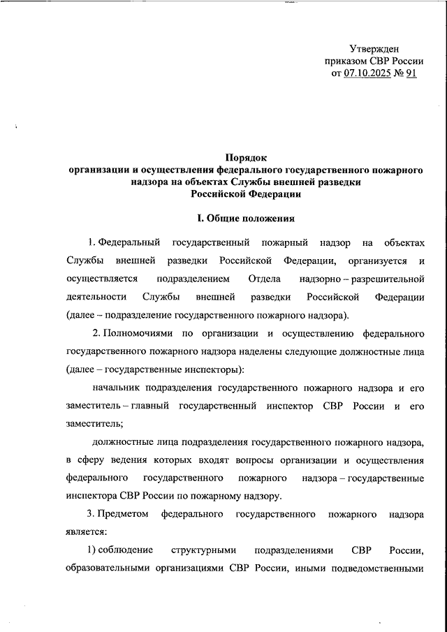ПРИКАЗ СВР РФ от 07.10.2025 N 91