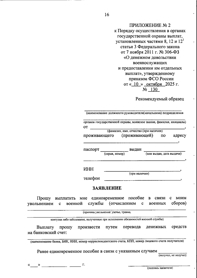 ПРИКАЗ ФСО РФ от 10.10.2025 N 130