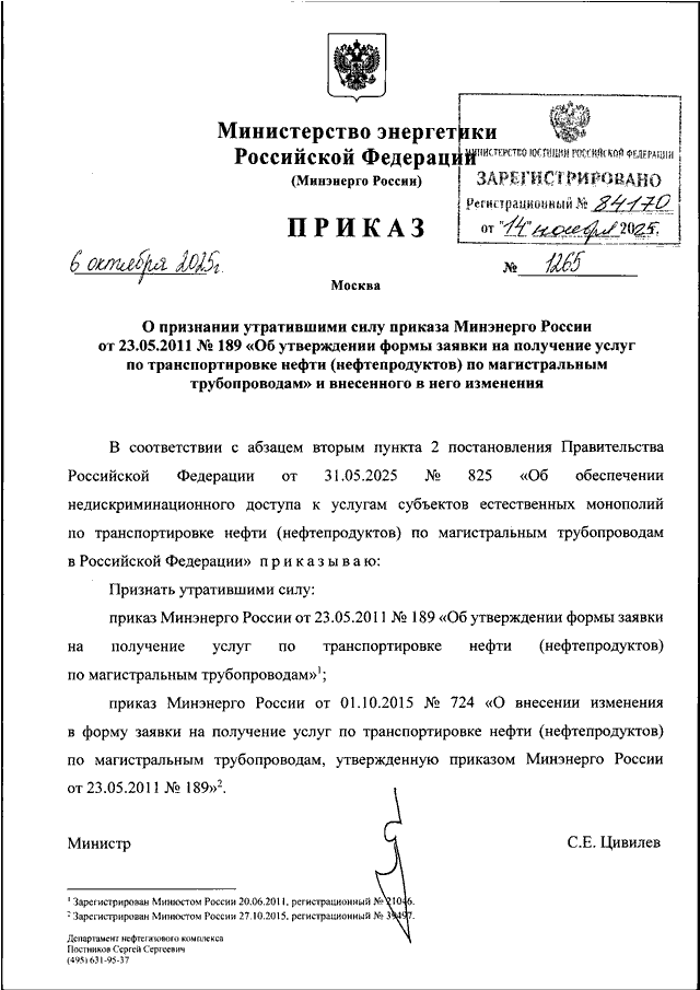 ПРИКАЗ Минэнерго РФ от 06.10.2025 N 1265