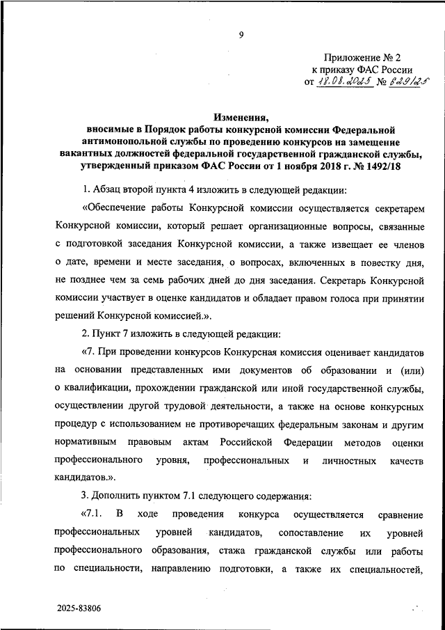 "О ВНЕСЕНИИ ИЗМЕНЕНИЙ В МЕТОДИКУ ПРОВЕДЕНИЯ КОНКУРСОВ НА ЗАМЕЩЕНИЕ ВАКАНТНЫХ ДОЛЖНОСТЕЙ ФЕДЕРАЛЬНОЙ ГОСУДАРСТВЕННОЙ ГРАЖДАНСКОЙ СЛУЖБЫ В ФЕДЕРАЛЬНОЙ АНТИМОНОПОЛЬНОЙ СЛУЖБЕ И ПОРЯДОК РАБОТЫ КОНКУРСНОЙ КОМИССИИ ФЕДЕРАЛЬНОЙ АНТИМОНОПОЛЬНОЙ СЛУЖБЫ ПО ПРОВЕДЕНИЮ КОНКУРСОВ НА ЗАМЕЩЕНИЕ ВАКАНТНЫХ ДОЛЖНОСТЕЙ ФЕДЕРАЛЬНОЙ ГОСУДАРСТВЕННОЙ ГРАЖДАНСКОЙ СЛУЖБЫ, УТВЕРЖДЕННЫЕ ПРИКАЗОМ ФАС РОССИИ ОТ 1 НОЯБРЯ 2018 Г. N 1492/18"