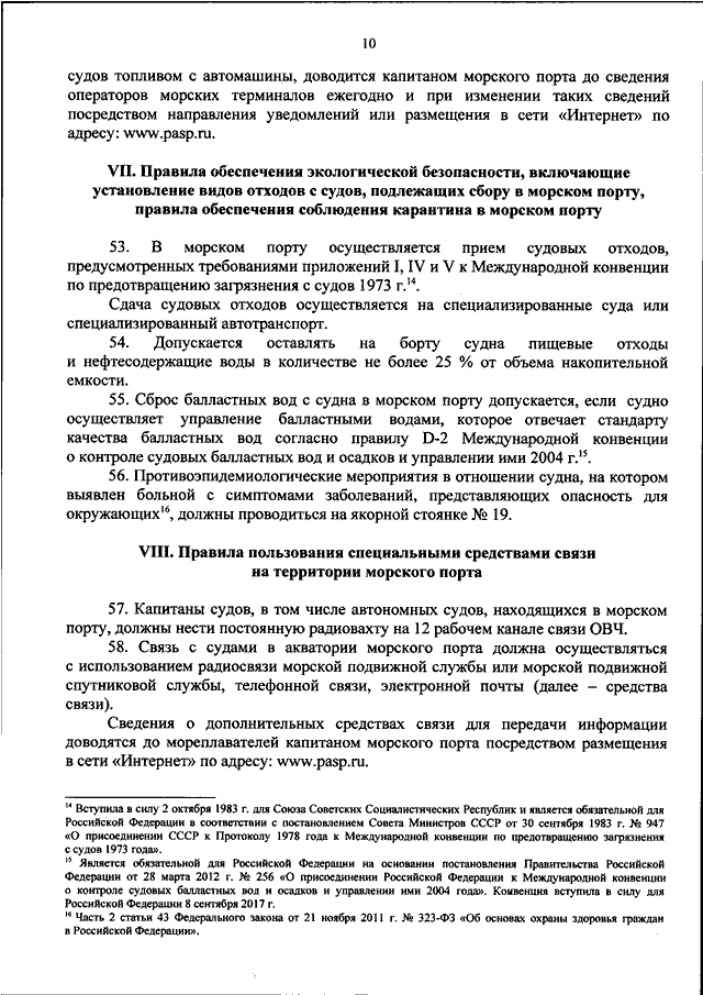 "ОБ УТВЕРЖДЕНИИ ОБЯЗАТЕЛЬНЫХ ПОСТАНОВЛЕНИЙ В МОРСКОМ ПОРТУ ВЫБОРГ"